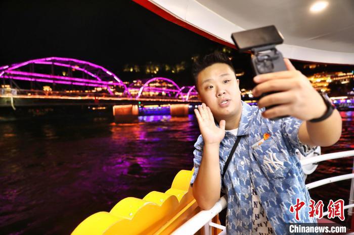 7月16日,“絲路風(fēng)采 如意甘肅”海峽兩岸記者聯(lián)合采訪活動(dòng)在甘肅蘭州啟動(dòng)。圖為臺(tái)灣自媒體人林惟綱在“黃河第一橋”——中山橋下拍攝短視頻。 中新社記者 李雪峰 攝