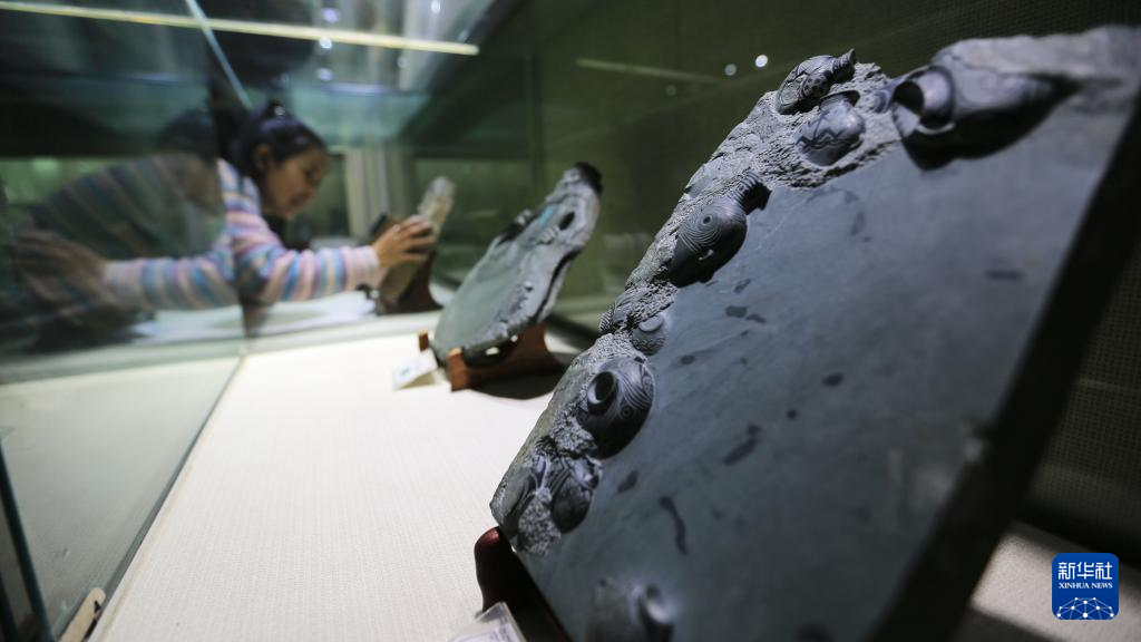 10月24日在甘肅省定西市臨洮縣洮硯藝術(shù)館拍攝的洮硯。新華社發(fā)(王克賢 攝)
