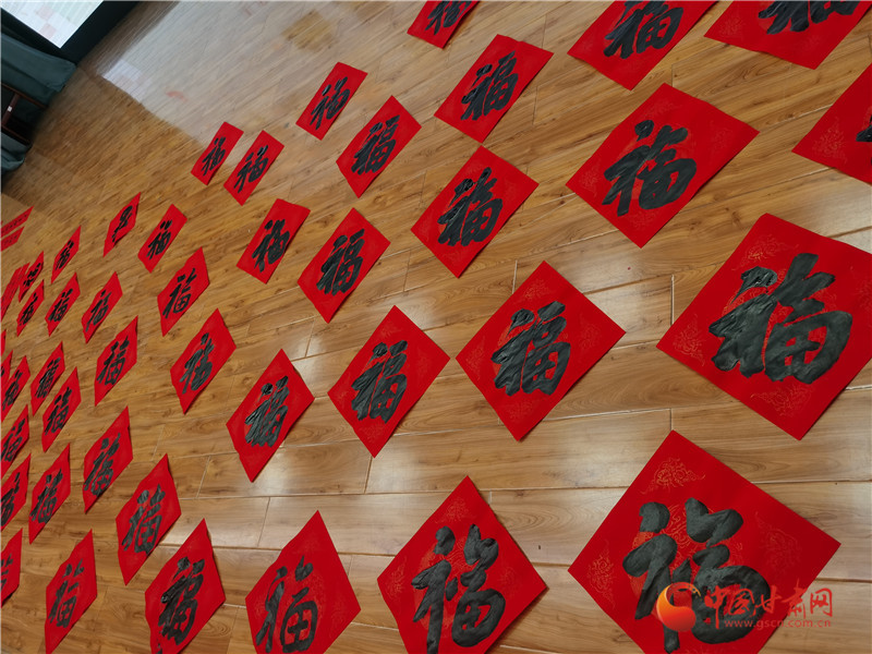 紅福滿(mǎn)地、墨香四溢,群眾們圍攏在書(shū)案前,挑選自己喜愛(ài)的聯(lián)句請(qǐng)書(shū)法家書(shū)寫(xiě)。書(shū)法志愿者們激情洋溢、揮毫潑墨,將濃濃的新春祝福凝聚在筆端,一行行俊秀蒼勁的書(shū)法,一副副對(duì)聯(lián),飽含幸福吉祥,寄托美好希望,現(xiàn)場(chǎng)洋溢著濃濃的節(jié)日味道。
