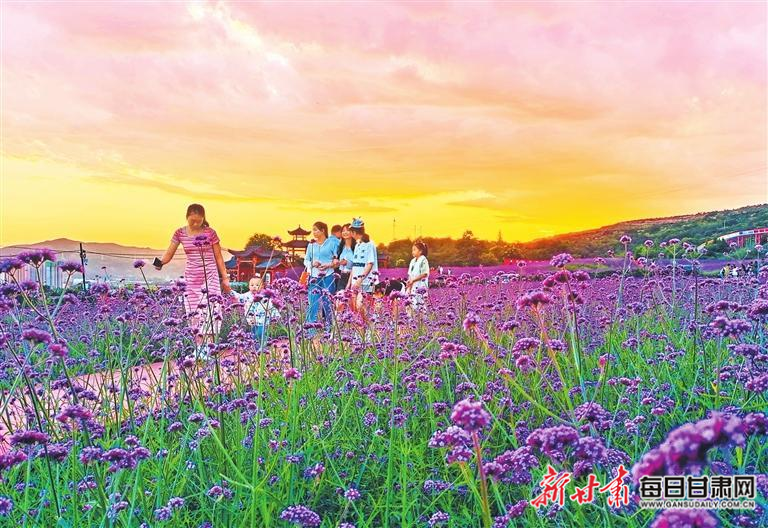 近日,清水縣花舞北山的馬鞭草進(jìn)入盛花期,在晚霞的映襯下,如一幅美麗的畫卷,吸引人們前來賞花游玩。新甘肅·甘肅日報(bào)通訊員 雷金鋒