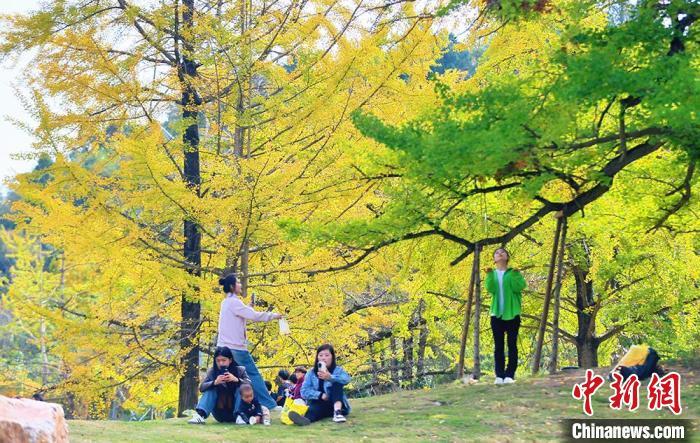 中新網(wǎng)蘭州10月28日電(高展)“霜降”過后銀杏黃。秋陽映照下,甘肅隴南市徽縣嘉陵鎮(zhèn)田河村宛如披上絢麗新裝,詩意夢幻。此地四周青山環(huán)抱,嘉陵江如靈動絲帶蜿蜒流淌,水豐土腴、氣候溫潤,為銀杏營造絕佳生長環(huán)境?;湛h委副書記、縣長王福全稱,銀杏,不僅承載著千年的歷史沉淀,更以其獨特的風姿和韻味,成為徽縣一張亮麗的名片。