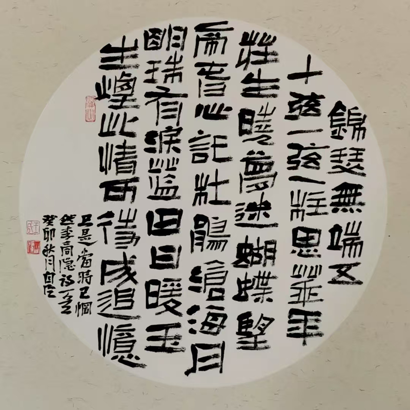 王自強(qiáng)的隸書植根于《西狹頌》的金石氣,又融入個人創(chuàng)新。他的作品《李白古風(fēng)其一》在2021年“中國書法·年展”中脫穎而出,以古樸厚重的筆法、靈動多變的章法,位列全國前51名,成為成縣首位躋身國家級書法大展的藝術(shù)家。2025年,他的隸書作品再次入選全國第五屆隸書作品展,在15214件投稿中脫穎而出,展現(xiàn)出對漢隸藝術(shù)的深刻理解與創(chuàng)新表達(dá)。