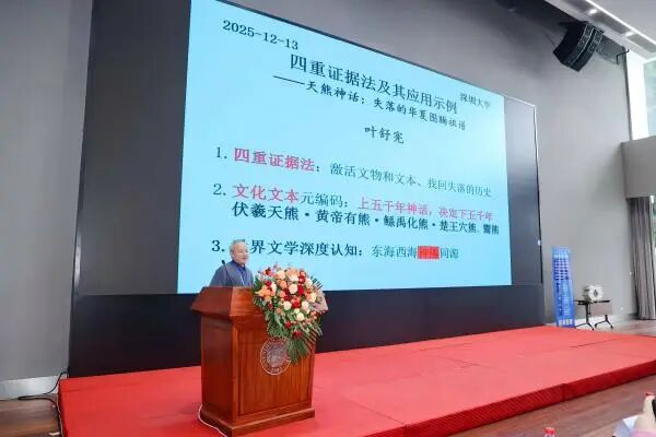 葉舒憲強(qiáng)調(diào)教授“四重證據(jù)法”對(duì)文明互鑒的推動(dòng)作用,國際影響持續(xù)擴(kuò)大。葉教授領(lǐng)銜的“神話學(xué)文庫”(第三輯)新書發(fā)布會(huì)在12月6日于上海交通大學(xué)盛大發(fā)布;“文庫”項(xiàng)目計(jì)劃出版71部著作,現(xiàn)已出版66本,余下5本將于2026年出版完成,將構(gòu)建起覆蓋全球25大文明圈的神話研究網(wǎng)絡(luò)。這是將“四重證據(jù)法”進(jìn)行跨文明比較研究的首次探索,揭示不同神話體系共通的“根性邏輯”。