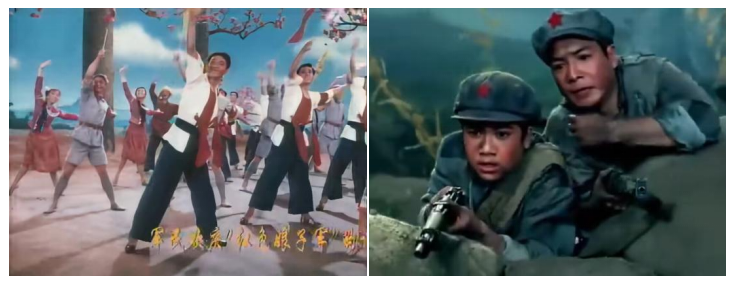 大眾傳播時代,中央電視臺的轉播率先將《紅軍不怕遠征難》從劇場送入千家萬戶。1985年,舞蹈被攝制成電影并全國公映,從機關單位到中小學校,組織化的集體觀看使其從即時性的舞臺呈現(xiàn),延伸為可供反復欣賞的歷史影像。與此同時,舞蹈中那些震撼人心的畫面與造型,被凝固定格為經(jīng)典圖像,廣泛進入教材、讀物等宣傳載體,從流動的舞臺藝術轉化為深入人心的視覺符號。作品中那些簡潔而富有象征意義的舞蹈語言,也成為全國各地文藝團體與學校學習、演繹的藍本,在基層舞臺上被不斷復現(xiàn)與傳承。