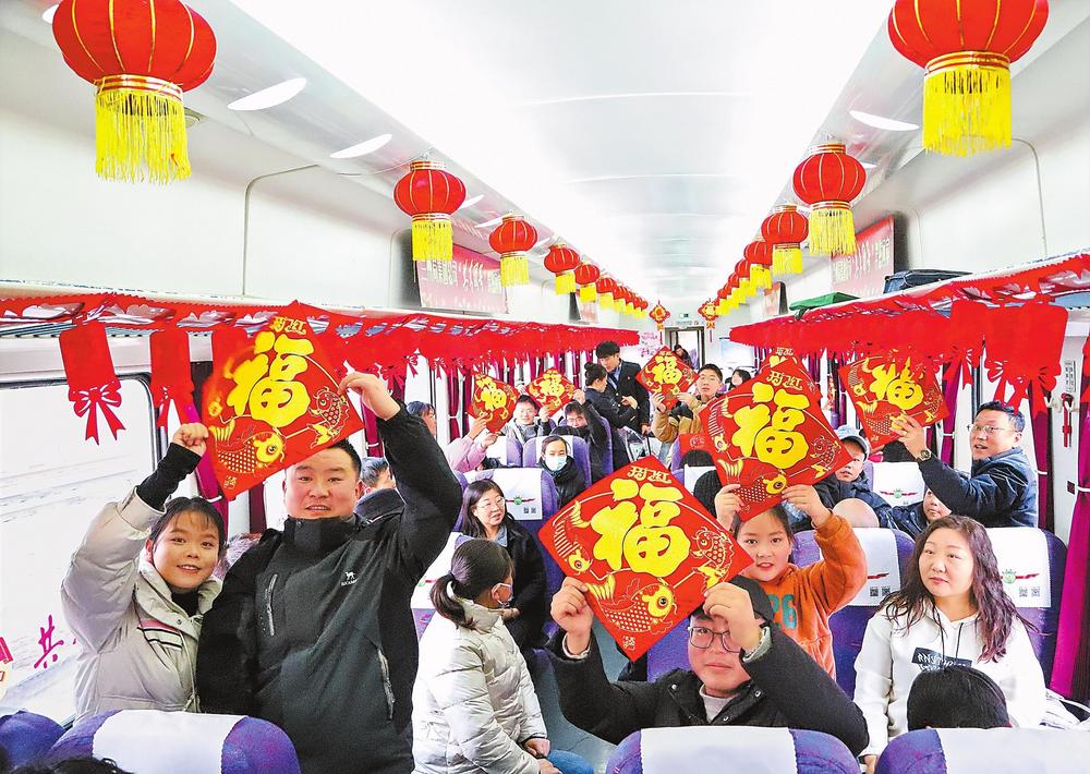 7504次“富民號(hào)”列車(chē)上張燈結(jié)彩,歡聲笑語(yǔ)。新春佳節(jié)來(lái)臨之際,無(wú)數(shù)人心懷著對(duì)家鄉(xiāng)的眷戀,踏上溫馨的回家之路。 新甘肅·甘肅日?qǐng)?bào)記者丁凱攝