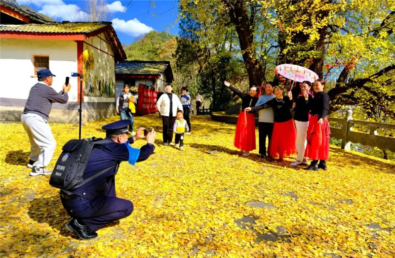 被秋色渲染的詩和遠(yuǎn)方背后,“警察藍(lán)”早已與山水和諧同框。晨霧中,成縣公安的無人機(jī)如雄鷹掠過雞峰云海;金黃的稻田里,“駐村輔警”用鄉(xiāng)音化解著鄰里糾紛;徽縣嘉陵江畔,特警的身影在江風(fēng)中堅(jiān)定挺立。這些畫面共同繪就了一幅新時(shí)代的“警旅融合圖”。