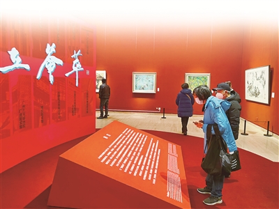 20世紀50年代以后,反映熱火朝天生活的藝術(shù)樣式漸漸成為主流,畫家們開始在傳統(tǒng)筆墨中融入新的風格。江蘇省美術(shù)館展廳展出了江蘇藝術(shù)群體“新金陵畫派”的作品。新金陵畫派是20世紀中國畫壇的重要畫派之一,畫家們倡導(dǎo)“思想變了,筆墨就不能不變”的藝術(shù)理念,在繼承傳統(tǒng)的基礎(chǔ)上以新筆墨反映時代的巨大變化。