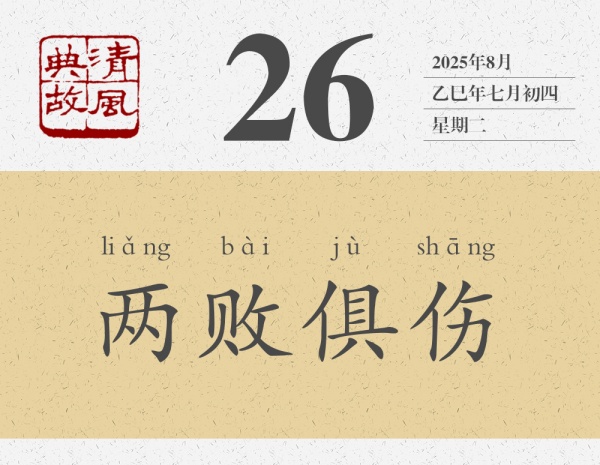 講完這個故事,陳軫言歸正傳,對秦惠王說:“今韓魏相攻,期年不解,是必大國傷,小國亡,從傷而伐之,一舉必有兩實(shí)。此猶莊子刺虎之類也。”秦惠王聽從了陳軫的建議,后來“大國果傷,小國亡,秦興兵而伐,大克之”。后世即以“兩敗俱傷”為典,比喻爭斗雙方都會受到損失,誰也得不到好處,也用來形容毫無意義的爭斗?!缎挛宕?bull;宦者傳論》:“雖有圣智,不能與謀。謀之而不可為,為之而不可成。至其甚,則俱傷而兩敗。”