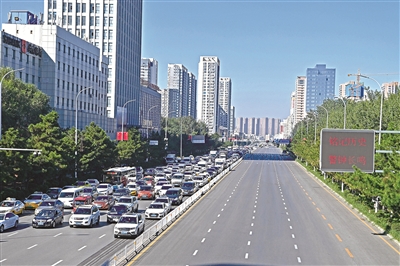 圖③:車輛在沈陽崇山中路停車鳴笛。 新華社記者 周華 攝