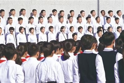 “白山黑水齊出動,復(fù)興我中華……”殘歷碑廣場上,80名青年學生鏗鏘有力的朗誦聲,讓《送戰(zhàn)友編歌壯行保國家》《黑水白山•調(diào)寄滿江紅》《濱江抒懷》三首分別由東北抗聯(lián)英雄楊靖宇、趙尚志、趙一曼當年寫下的詩詞響徹在沈陽“九•一八”歷史博物館上空。