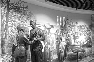 圖為紀(jì)念館內(nèi)展示的內(nèi)黃沙區(qū)群眾踴躍參軍參戰(zhàn)、支援前線復(fù)原場(chǎng)景。