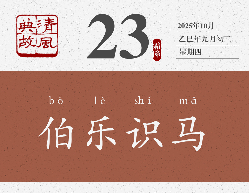 春秋秦穆公時(shí),有一個(gè)著名的相馬師叫孫陽。因?yàn)樯裨拏髡f中,掌管天馬的神仙叫伯樂,人們?yōu)榱吮硎緦?duì)孫陽的敬佩,就稱他為伯樂。屈原《九章•懷沙》以及《莊子•馬蹄》《列子•說符》都曾經(jīng)提到過伯樂?!稇?zhàn)國(guó)策•楚策四》里,春申君的舍人汗明,向春申君講了一個(gè)關(guān)于千里馬的故事:“夫驥之齒至矣,服鹽車而上太行。蹄申膝折,尾湛胕潰,漉汁灑地,白汗交流,中阪遷延,負(fù)轅不能上。伯樂遭之。下車攀而哭之,解纻衣以冪之。驥于是俛而噴,仰而鳴,聲達(dá)于天,若出金石聲者,何也?彼見伯樂之知己也。”