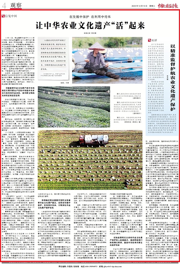 紀(jì)檢監(jiān)察機(jī)關(guān)主動(dòng)將農(nóng)業(yè)文化遺產(chǎn)保護(hù)納入監(jiān)督重點(diǎn),推動(dòng)職能部門(mén)積極履行職責(zé),推進(jìn)中華優(yōu)秀農(nóng)耕文化保護(hù)傳承