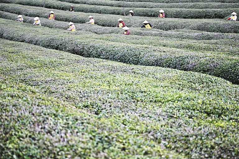 圖②:福鼎白茶文化系統(tǒng)位于福建省福鼎市,其獨(dú)特的地理位置、氣候條件和悠久歷史孕育了特有的茶樹(shù)品種和制茶技藝,以及深厚的文化內(nèi)涵。圖為福鼎市一家茶企工人在茶園采茶。(資料圖片)