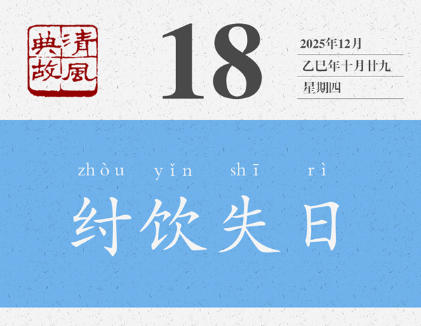 一提起商紂王,大概就會(huì)想起沉湎酒色、窮兵黷武、重刑厚斂等等,與之相關(guān)的典故也有酒池肉林、炮烙之刑、牝雞司晨等等。“歡以失日”是他沉湎酒色的又一個(gè)故事,往輕處說就是酒醉失憶了,往重處說就是把一切都拋到九霄云外了?;樱醋玉阌?,商紂王的叔父,官至太師,封于箕,故稱箕子,“殷末三仁”之一,《論語·微子》曰:“微子去之,箕子為之奴,比干諫而死,殷有三仁焉。”箕子曾多次勸諫紂王,但紂王不聽,他心灰意冷,索性披發(fā)佯狂,紂王見此,以為箕子真瘋了,遂將他囚禁起來,貶為奴隸。有了這個(gè)背景,就知道箕子為什么要“辭以醉而不知”了。后世則以“紂飲失日”為典,形容生活荒唐混亂,也用來形容不辨時(shí)間。黃遵憲詩《倫敦大霧行》:“蒼天已死黃天立,倒海翻云百神集。一時(shí)天醉帝夢酣,舉國沉迷同失日。”