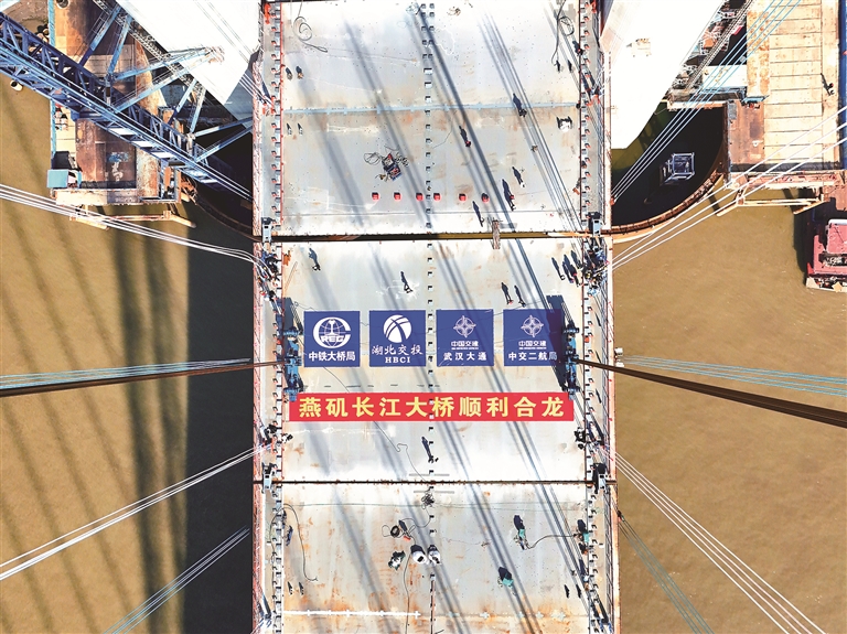 逢山開路、遇水架橋。萬里長江之上,一座座大橋宛若飛虹凌空。在湖北,又見鋼鐵巨龍越江。12月7日,隨著最后一段鋼混組合梁吊裝到位,連接鄂州市與黃岡市兩地的燕磯長江大橋全線貫通。