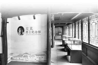 陽光穿過館內(nèi)的戲臺飛檐和雕花窗欞,停留在展臺陳列的泛黃手稿上。“幼妹左克,忠厚老實,個性溫和,勤奮用功”“周平兄,紀念振先的修改稿已脫稿,有三千字”……一行行回憶文字在光影斑駁中穿越時空,直擊心弦。照片墻上,一張左克身穿網(wǎng)球服打網(wǎng)球的照片十分光彩奪目。照片中的她,青春洋溢,明媚鮮活??粗@張照片,左克侄孫裘冶良動情地說道:“她本可以享受舒適安逸的生活,卻依然選擇了充滿艱辛的革命道路,更說明她信仰之堅定。”