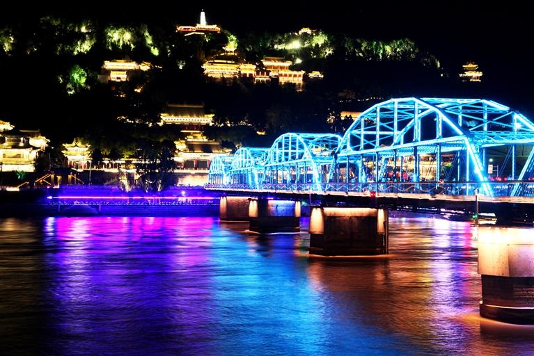 中國甘肅網5月24日訊 據蘭州日報報道(記者 張建平 攝)為迎接甘肅省第十四次黨代會勝利召開,我市在標志性橋梁、廣場及樓體精心組織以“蘭州藍”為主題的燈光秀,營造濃厚的喜慶氛圍。中山橋、黃河樓等處燈光展示“蘭州藍”,這顯示了全市上下守護碧水藍天的信心,更昭示著全市黨員干部堅定垂范清廉蘭州,共建政治生態(tài)“蘭州藍”的決心。
