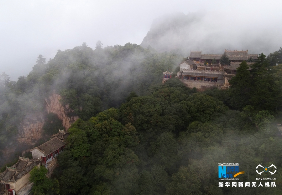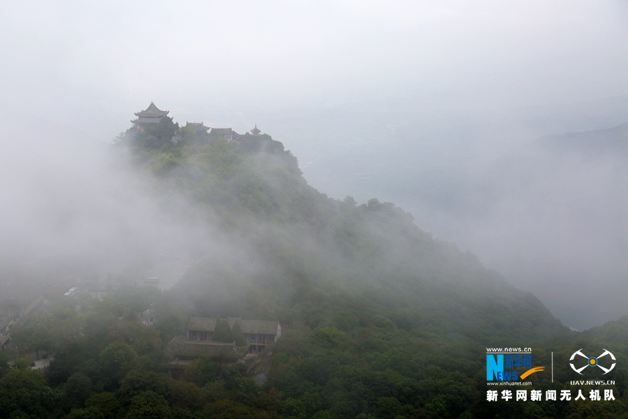 9月18日,崆峒山出現(xiàn)云海景觀。新華網(wǎng)發(fā)(吳希會攝)