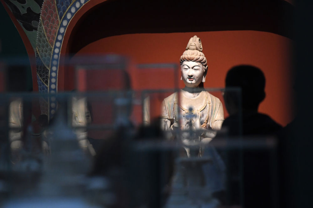 4月5日,觀眾在敦煌研究院蘭州分院敦煌藝術(shù)館參觀。新華社記者陳斌攝