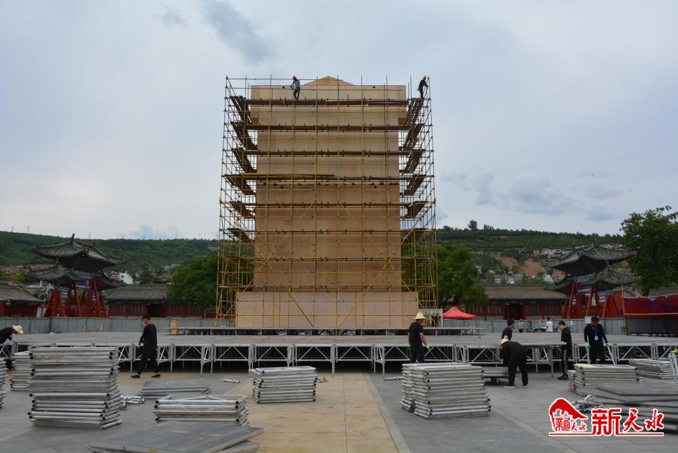 天水市文化旅游投資發(fā)展有限責任公司總經(jīng)理景延峰告訴記者,他們主要負責公祭伏羲大典文化豐碑的搭建以及伏羲廣場周邊和外圍環(huán)境的美化和亮化工程。5月12日開始進場施工,目前伏羲文化豐碑主體已經(jīng)搭建完成,各項工作都在有序推進。下一步將進行豐碑文化浮雕的安裝,伏羲路四個花籃的修復(fù)和裝飾、美化,道旗和舞臺的重新翻修,以及鮮花布置等工作,預(yù)計所有工作在6月15日全部完成到位。
