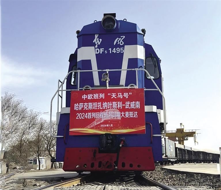 中國甘肅網1月18日訊 據蘭州晚報報道 日前,一列搭載62個集裝箱1600多噸,貨值406萬元的哈薩克斯坦進口糧飼回程班列抵達武威南站,這是今年中鐵蘭州局集團公司蘭州貨運中心首趟中歐進口糧飼專列。此趟班列在蘭州貨運中心、市商務局和金昌海關共同謀劃下,從哈薩克斯坦扎納葉斯利出發(fā),由阿拉山口入境,歷時8天,順利抵達武威南貨場。