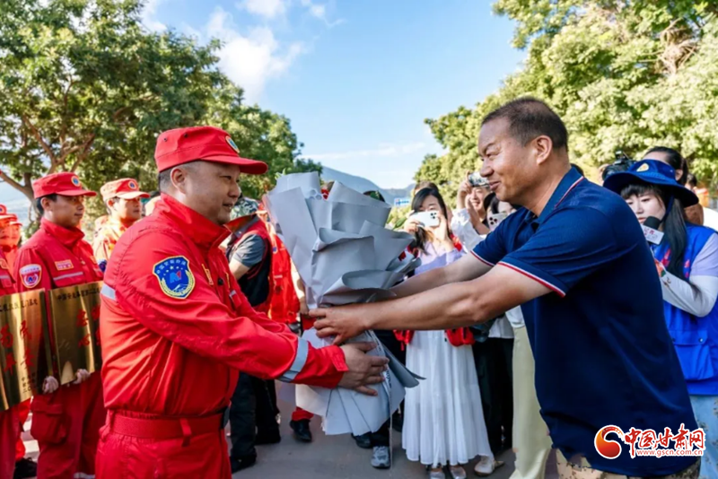 受榆中縣委書記崔峰巍,縣委副書記、縣長魏孔毅委托,縣政協(xié)主席于軍代表縣委、縣政府及全縣人民,向中國安能全體救援人員致以崇高敬意,并呈送錦旗。他說,災(zāi)情發(fā)生后,各方救援力量不畏艱險、全力以赴,圓滿完成了各項任務(wù),為榆中搶險救災(zāi)作出突出貢獻。中國安能隊員的離別,留下的是用生命守護生命的深厚情誼,榆中人民將永遠銘記??h領(lǐng)導(dǎo)蘇鑫良、王廷宏、李敬強一同參加送別。
