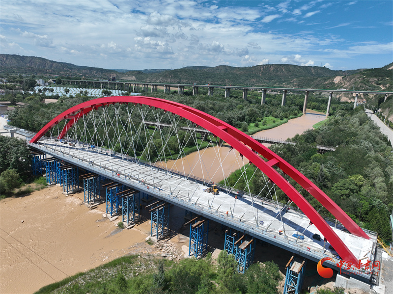 今年5月20日,長慶橋主體拱肋吊裝完成,大橋主體輪廓初現,紅橋橫跨涇河,以極高辨識度被人們關注。