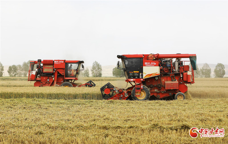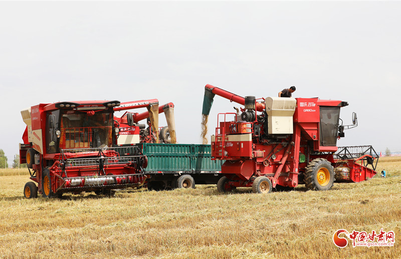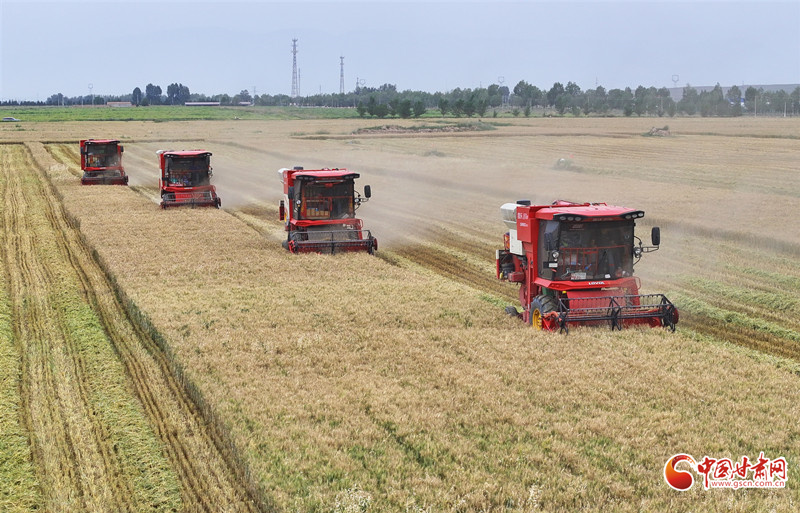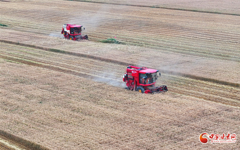 8月11日,在民樂縣民聯(lián)鎮(zhèn)顧寨村千畝連片小麥種植基地,農(nóng)機(jī)手們正在駕駛聯(lián)合收割機(jī)穿梭往返在麥田之中搶收小麥,確保小麥顆粒歸倉(cāng)。