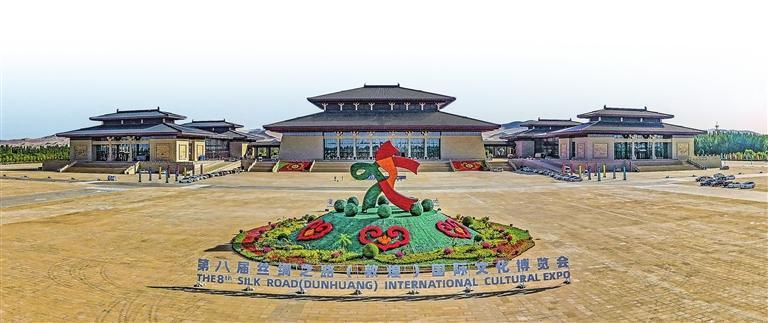 第八屆絲綢之路(敦煌)國際文化博覽會(huì)準(zhǔn)備就緒,主場館裝扮一新。 田蹊
