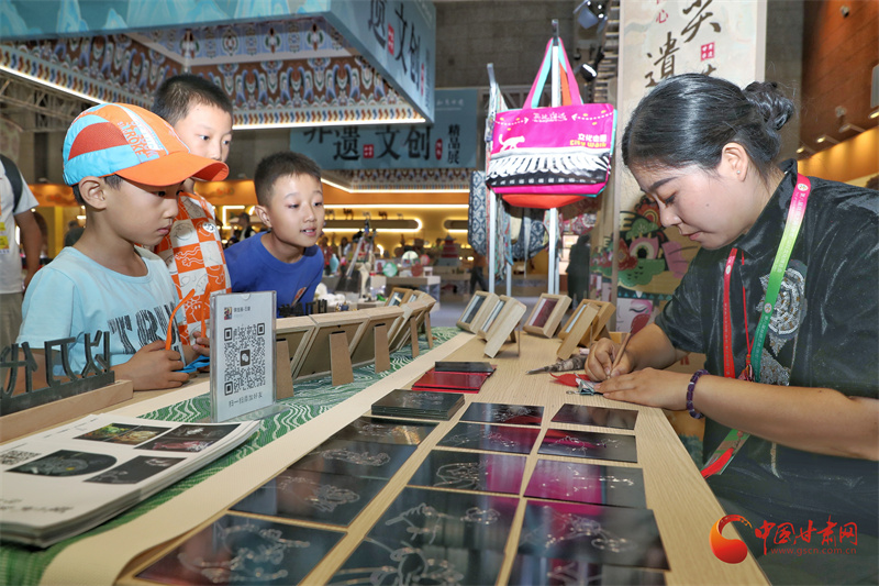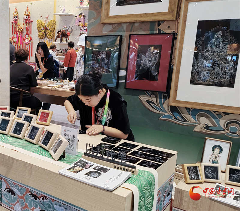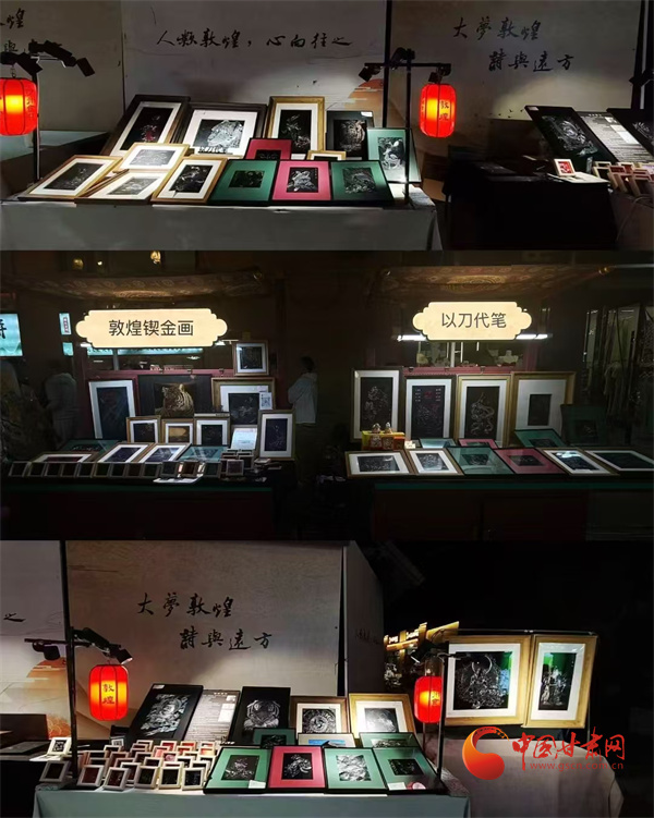 第八屆敦煌文博會非遺文創(chuàng)展區(qū),非遺藝人王婕正在展示鍥金畫技藝。通俗來說就是在金屬板上刻畫,每一個線條都要用刻刀在金屬板材上留下印痕。