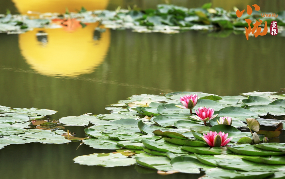 低頭凝望荷塘,荷葉像一把把撐開的綠傘鋪展在水面上,遮住了秋日的熱氣,給大地帶來一片清涼。荷花、睡蓮點(diǎn)綴其中,雀鳥在水天之間嬉戲盤旋,時(shí)而點(diǎn)水,時(shí)而落于荷花之上,于遠(yuǎn)處觀賞這份和諧景致,真是別有一番趣味。