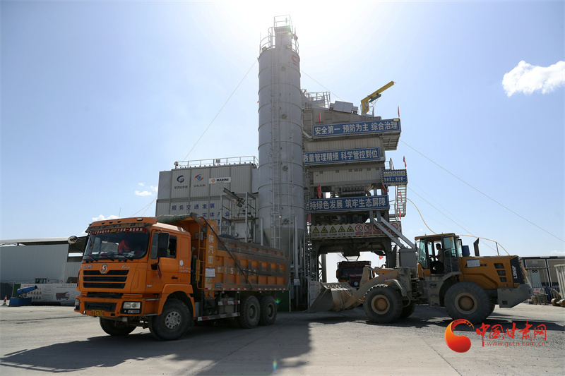 盛夏時(shí)節(jié),戈壁熱浪滾滾,路面攤鋪更加繁忙,瀝青拌合站火力全開(kāi),保障路面作業(yè)。