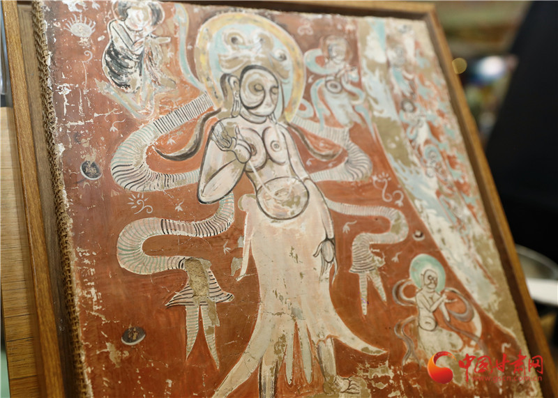 與敦煌石粉彩繪技藝的相遇,像一場跨越時(shí)空的約定。那天,她看見老師傅蹲在黨河岸邊,將彩色石頭細(xì)細(xì)研磨,青金石化作澄澈的藍(lán),朱砂揉成熾熱的紅,礦石粉末與膠液相融后,在泥板上暈開的光澤,竟與莫高窟壁畫的溫潤如出一轍。“這不是簡單的畫畫,是在和千年前的畫工對(duì)話。”她當(dāng)即拜師,從此成了黨河邊最執(zhí)著的“尋石人”——一遍遍彎腰撿拾彩石,在研磨聲里探尋壁畫“千年不褪色”的奧秘:黨河沉淀的澄板土做底,摻上細(xì)沙與棉絮拌勻,再敷上親手制的礦石顏料,每一步都藏著對(duì)古法的敬畏,每一筆都浸著對(duì)文明的珍視。有時(shí)對(duì)著壁畫臨摹,恍惚間竟覺指尖觸到了千年前的顏料,耳畔似有畫工的低語,那份時(shí)空交錯(cuò)的共鳴,讓她更堅(jiān)定了守護(hù)這份技藝的決心。