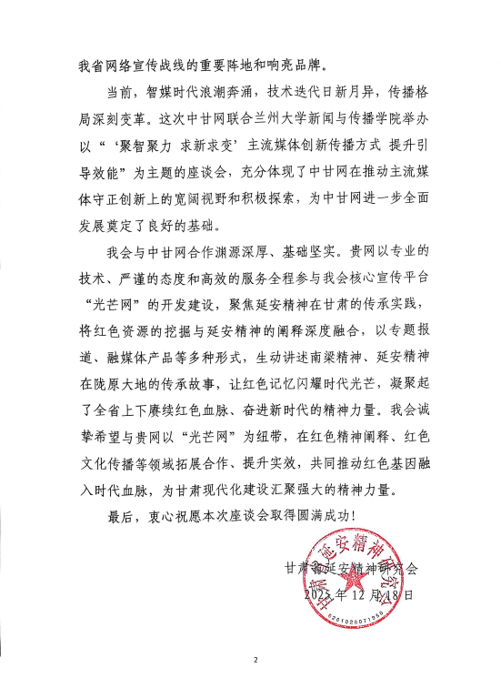 甘肅省延安精神研究會(huì)誠(chéng)摯希望以“光芒網(wǎng)”為紐帶,與中甘網(wǎng)在紅色精神闡釋、紅色文化傳播等領(lǐng)域拓展合作,提升實(shí)效,共同推動(dòng)紅色基因融入時(shí)代血脈,為甘肅現(xiàn)代化建設(shè)匯聚強(qiáng)大精神力量。