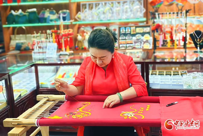 說起這些時,她正坐在工作室的窗邊。陽光透過玻璃灑在繡繃上,金線泛著暖光。窗外是河西走廊的曠野,風(fēng)卷著黃沙,卻吹不動她手里的針線——那針腳里,藏著比丹霞更絢麗的未來。