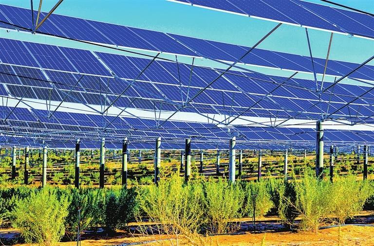 涼州區(qū)打造“板上發(fā)電、板間經(jīng)濟(jì)、板下固沙”的復(fù)合生態(tài)產(chǎn)業(yè)。