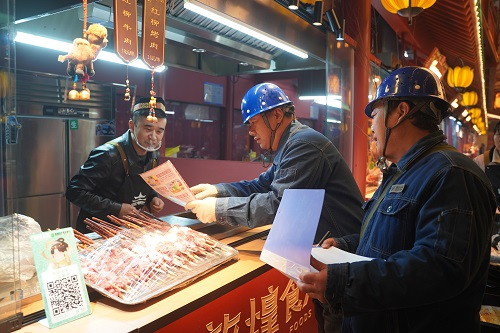 “老板,您的攤位線路沒問題,別讓電器超負荷運行,出現(xiàn)任何用電問題請及時聯(lián)系我們。”2月3日晚,在敦煌燒烤爭霸賽現(xiàn)場,國網敦煌市供電公司工作人員正在對賽場線路設備進行巡視檢查,以確保競賽的順利進行。