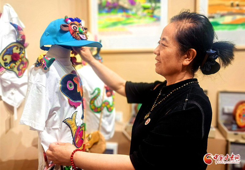 趙星萍的藝術(shù)創(chuàng)作扎根鄉(xiāng)土,從剪紙系列起步,拓展至創(chuàng)意香包,如今又融合剪紙、香包、刺繡、布貼畫等傳統(tǒng)技藝,開發(fā)出香包童裝T恤、刺繡帽子、剪紙臺(tái)燈等特色文創(chuàng)產(chǎn)品。其作品既傳承了隴東大地簡(jiǎn)潔明快的藝術(shù)基因,又展現(xiàn)出新時(shí)代的創(chuàng)新活力。
