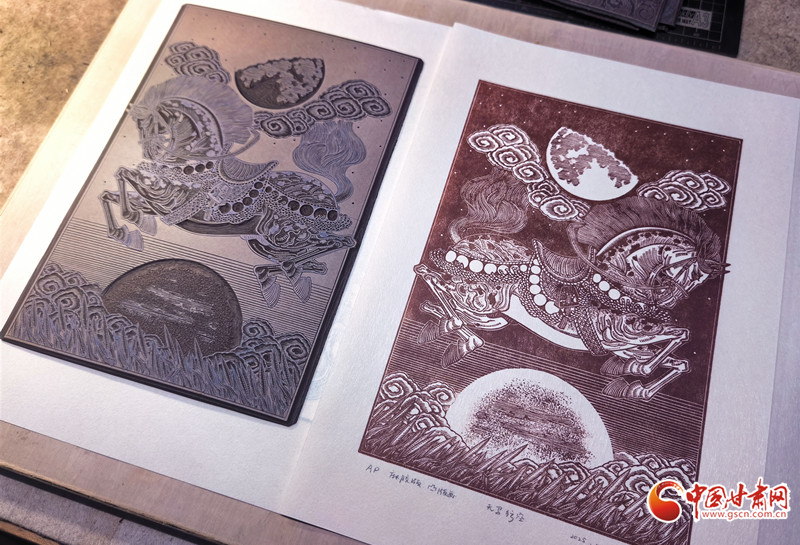 從彩陶紋樣到飛天神韻,從黃河之濱到絲路駝鈴,當(dāng)傳統(tǒng)技藝遇上現(xiàn)代思維,當(dāng)?shù)赜蛭幕鲎踩蛞曇?,趙寧的刀刻人生,既是個(gè)人對(duì)藝術(shù)的執(zhí)著追求,更是一位非遺傳承人對(duì)文化根脈的深情守護(hù)。正如他所說(shuō):“版畫(huà)不是冰冷的木板,而是有溫度的文化記憶。”在這方寸之間的刻板上,甘肅的故事正被重新書(shū)寫(xiě),非遺傳承也在時(shí)代語(yǔ)境下實(shí)現(xiàn)著創(chuàng)造性轉(zhuǎn)化,綻放出更加絢爛的光彩。