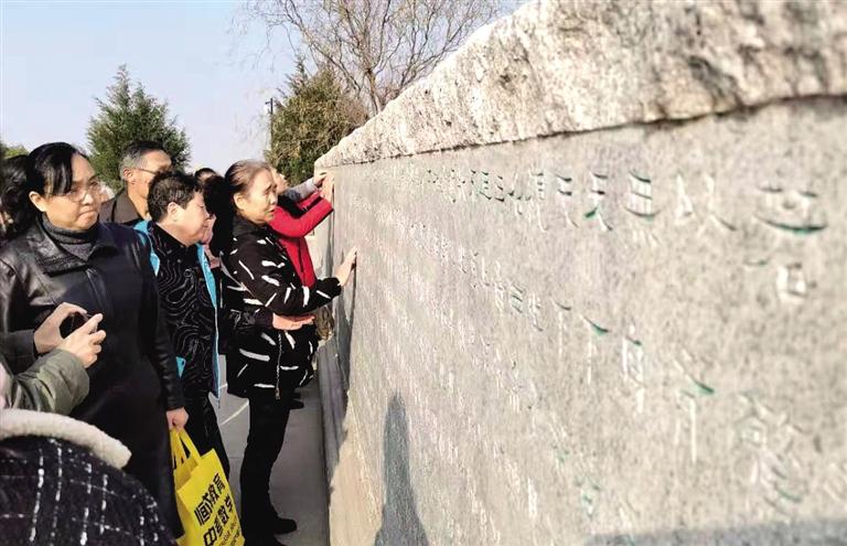 活動(dòng)中,我市50多名視障讀者應(yīng)邀在50多名志愿者的攙扶和引導(dǎo)下走進(jìn)了蘭州國(guó)學(xué)館,開(kāi)始了這場(chǎng)雙手“觸摸”國(guó)學(xué)之旅。講解員分兩組帶領(lǐng)著大家參觀了蘭州國(guó)學(xué)館,在他們溫暖、親切的嗓音里,國(guó)學(xué)館的風(fēng)情樣貌逐漸在視障讀者的心中變得愈發(fā)清晰。一路上,工作人員還不斷鼓勵(lì)他們用身體去觸摸影雕、浮雕、線刻等,用指尖近距離感受著國(guó)學(xué)精粹的無(wú)比魅力。參觀完畢后,視障讀者們舉行了國(guó)學(xué)經(jīng)典交流與分享活動(dòng),在暢所欲言中表達(dá)了內(nèi)心的激動(dòng)和喜悅。