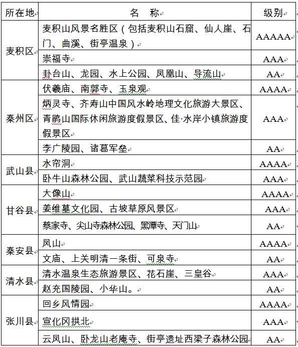 原標題:公告!天水市恢復開放的A級旅游景區(qū)名單
