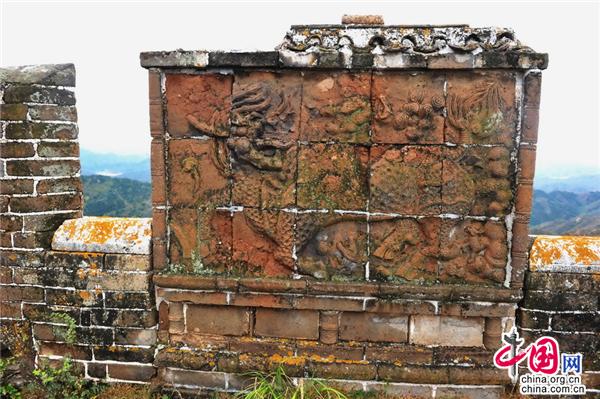而且在麒麟的周邊,還搭配了許多小圖案做點(diǎn)綴,比如小鹿、小鳥,甚至還有靈芝。很多文物專家說,麒麟影壁墻是萬(wàn)里長(zhǎng)城上極為罕見的遺跡。麒麟在我國(guó)古代是傳統(tǒng)的祥云瑞獸,在明代更是一個(gè)等級(jí)非常高的瑞獸。不少長(zhǎng)城專家表示,麒麟影壁出現(xiàn)在金山嶺長(zhǎng)城上,也充分表現(xiàn)了戍守長(zhǎng)城的官兵祈盼和平、吉祥,憧憬幸福生活的美好愿望。