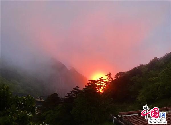 每逢五月,杜鵑花如約而至,用思慮了一冬的巧思把黃山的每一個角落都裝扮一新,給連綿不絕的山崗披上了五彩的織錦。經(jīng)過了一冬的蟄伏和等待,杜鵑鉚足了勁兒,花團(tuán)錦簇的熱情如“燃”起的火把,紅透了半邊天。黛青色的遠(yuǎn)山縹緲幽遠(yuǎn),參天的松柏枝繁葉茂,淡而薄的云霧似有還無,杜鵑的姹紫嫣紅給黃山這幅意蘊(yùn)悠長的水墨畫增添了幾分濃墨重彩,黃山更加靈動秀美了。最壯觀的當(dāng)屬日出日落時分了,天邊的紅霞好似在花枝間流連,墜入花叢般和散落一地的杜鵑相互輝映、渾然一體。