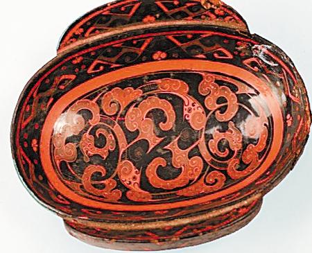 這一時期漆器上的幾何紋畫,主要有菱形紋、三角紋、圓圈紋、平行線紋等。如武威磨嘴子4號漢墓出土的漆缽,其腹、底部交接處繪二方連續(xù)菱格紋,菱格內(nèi)填圓圈紋和渦漩紋,口內(nèi)次要部位則繪幾何平行線紋。