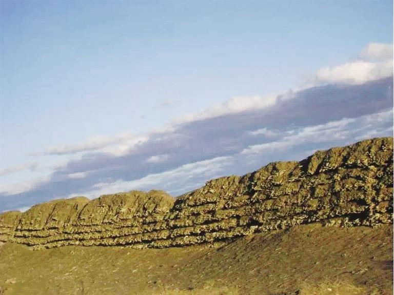 花海漢長城遺址位于玉門市花海鎮(zhèn)西泉村頭墩西側(cè)至二墩東側(cè),西起三墩,東至花海頭墩,全長約3.5公里,長城基寬約2.4米,用沙石、紅柳分層夯筑,最高部分保存有紅柳7層,是河西走廊漢代長城遺址中保存較完好的地段之一。為有效保護漢長城花海段遺址,近年來,玉門市積極實施漢長城防護工程,對該段因長期遭受風(fēng)力侵蝕,病險較為嚴(yán)重的長城本體進行了搶險加固,在花海鎮(zhèn)頭墩西側(cè)至二墩河壩間1.5公里地段內(nèi)敷設(shè)了6層全封閉刺鋼絲網(wǎng),并在漢長城內(nèi)外兩側(cè)安裝防護欄、樹立保護標(biāo)志、埋設(shè)界樁界碑,有效遏制了人為破壞,對漢長城的保護發(fā)揮了積極作用。