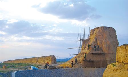 長城烽燧修繕(資料圖) 新甘肅·甘肅日報通訊員 翟繼宗