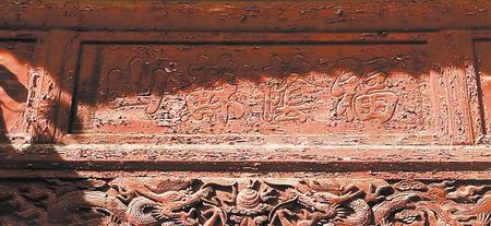 會館正殿東西兩側(cè),各有一個小別院,幽靜一隅,別有洞天。別院門樓整體為磚雕裝飾,邊墻墻面各用一塊保存完好的磚雕裝飾。東別院磚雕為:“祥龍吐瑞”,也意左青龍。