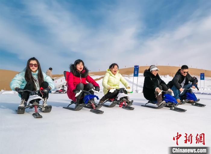 圖為新年伊始,游客在敦煌沙漠露營(yíng)基地享受滑雪的樂(lè)趣。張曉亮 攝