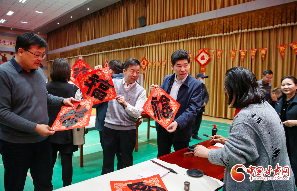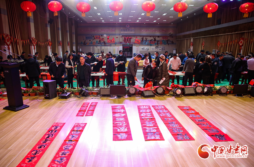 1月25日晚,甘肅省酒泉市教育局機(jī)關(guān)黨支部舉辦了寫(xiě)春聯(lián),迎新春活動(dòng)。活動(dòng)現(xiàn)場(chǎng),來(lái)自市區(qū)兩級(jí)書(shū)協(xié)、美協(xié)及教育系統(tǒng)的書(shū)法家們筆走龍蛇,潑墨揮毫,行、隸、草等多種書(shū)體各顯神韻,一幅幅充滿喜慶、祝福的對(duì)聯(lián)在書(shū)法家的手中隨筆而出,為迎接新春佳節(jié),弘揚(yáng)傳統(tǒng)文化,營(yíng)造歡樂(lè)、祥和的節(jié)日氛圍。